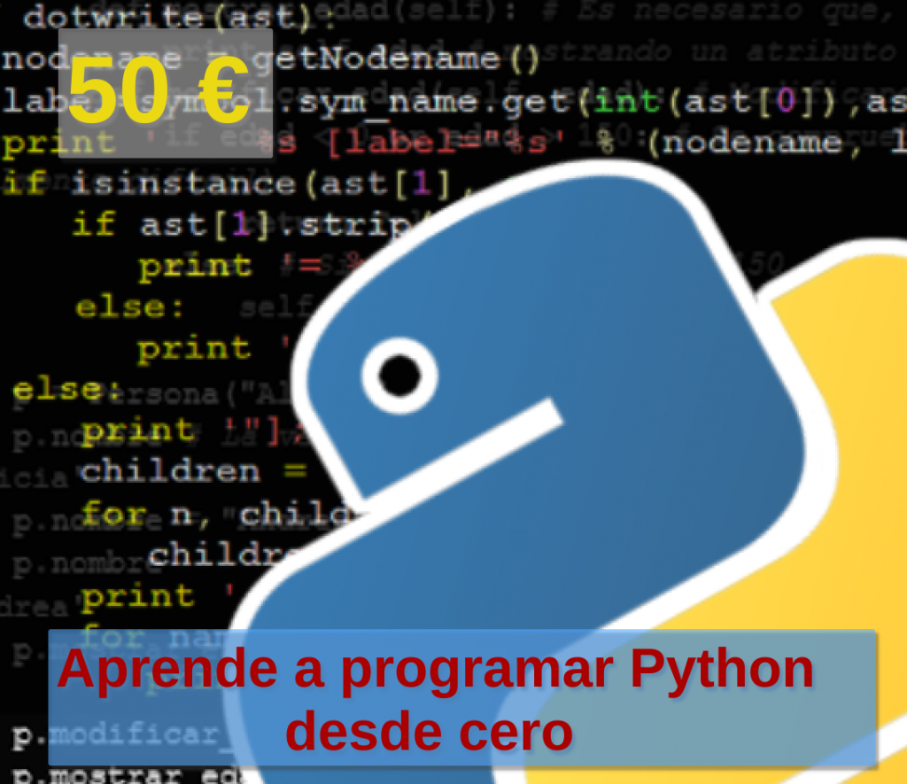 - Programación Python (50€): Python es una excelente herramienta para el trabajo con grandes volúmenes de datos. Aprende a programar Python desde cero y empieza a usarlo para el Big Data.
