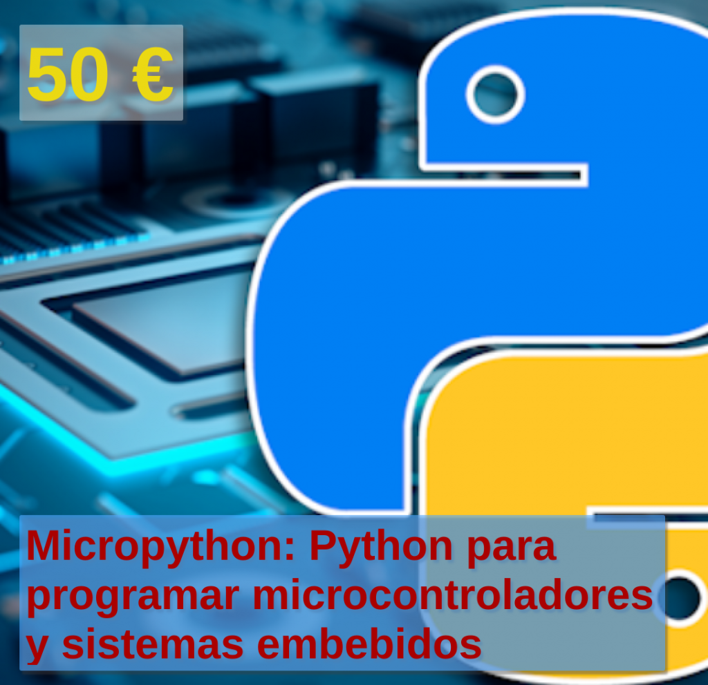 - Programación Micropython (50€): MicroPython, un pequeño pero eficiente interprete de Python optimizado para funcionar en microcontroladores, que nos permite desarrollar proyectos más complejos con un menor conocimiento y la misma sencillez de Python.